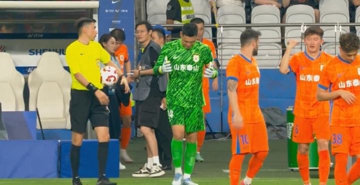 09月12日讯 中超第24轮,上海申花vs山东泰山。下半场比赛开始前,王彤还在与主裁判麦麦提江交流上半场马纳法的手球。